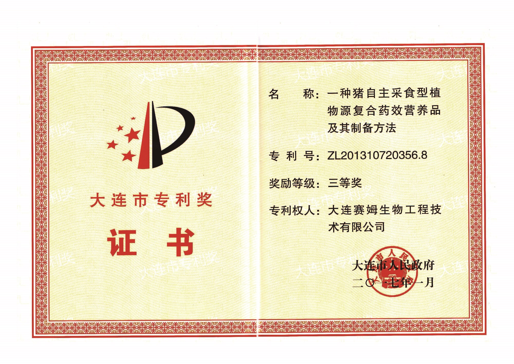 ? ? ? ? 公司先后承擔了國際重大合作項目、國家科技部863計劃項目、國家自然科學基金項目、國家杰出青年科學基金項目、遼寧省科技成果轉化項目、遼寧省海外學子創業工程專項計劃、遼寧省海外研發團隊項目、遼寧省中小企業創新基金項目、大連市產業技術創新資金項目、金州新區現代農業計劃項目等40余項國家、省、市、區級科研課題。截至目前,公司擁有3項國際領先水平和3項國際先進水平的技術成果,申請國家發明專利71項,已獲授權30余項。公司先后獲得“國家重點新產品”、“遼寧省科技進步獎”和“大連市科技進步獎”等科技成果達11項。